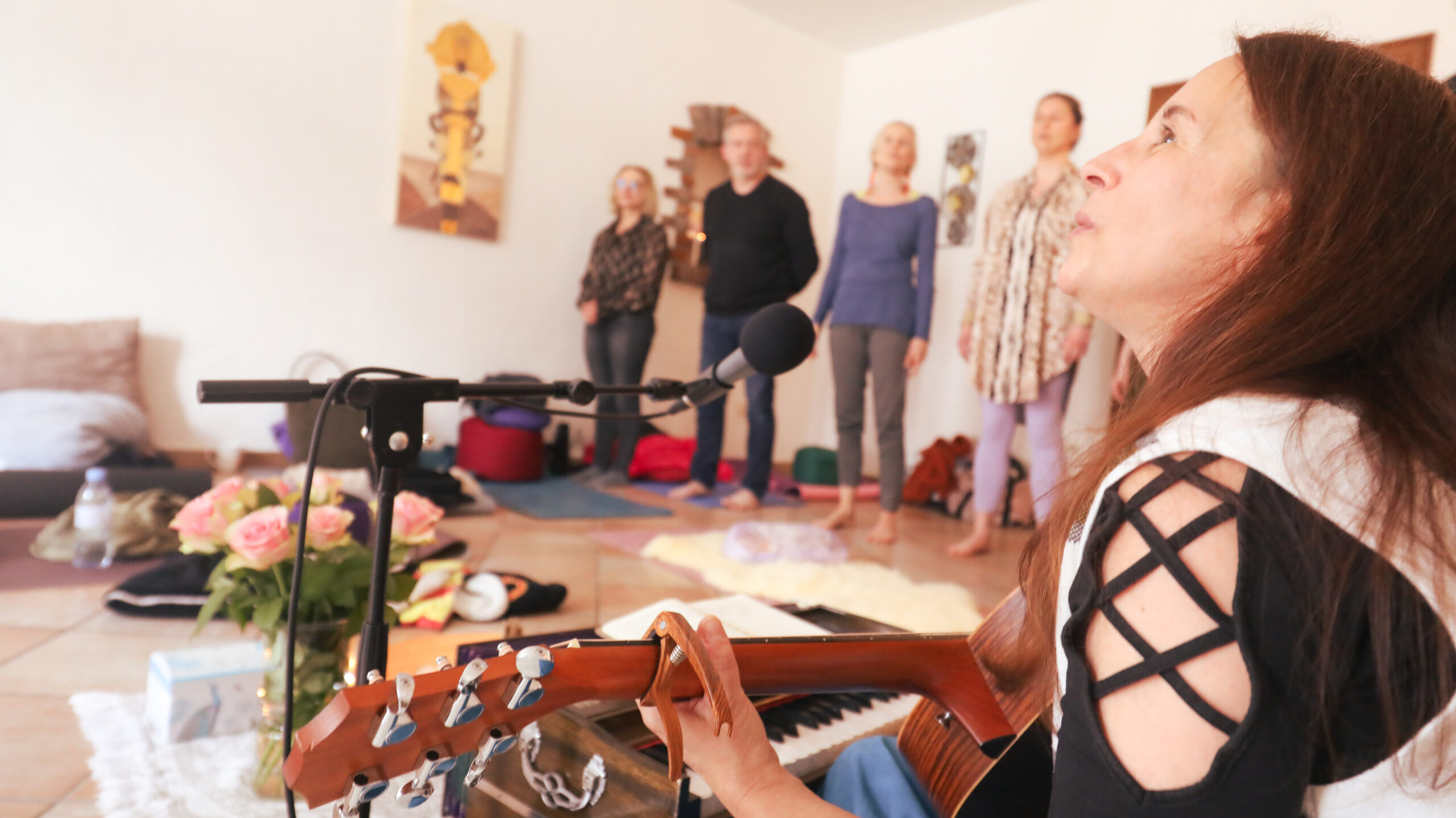 • Cultivate mindfulness and presence through gentle breathwork, grounding and voice opening techniques.
